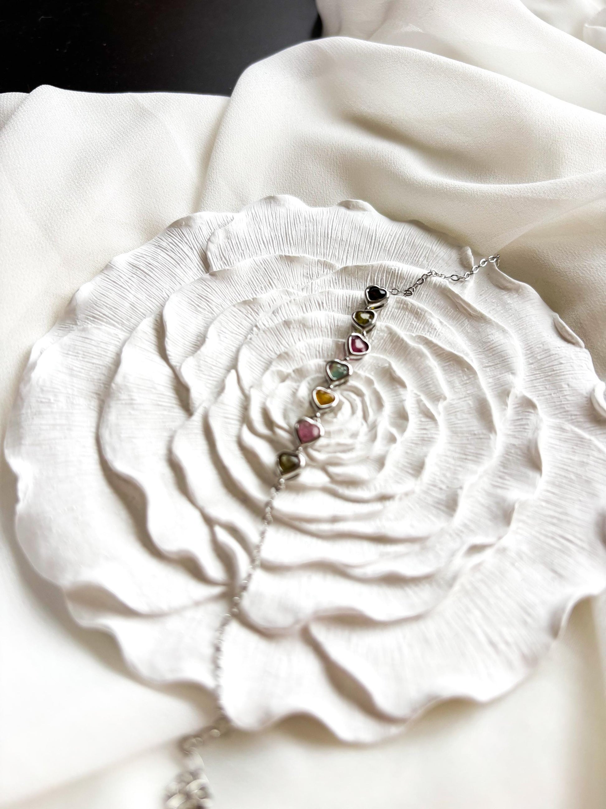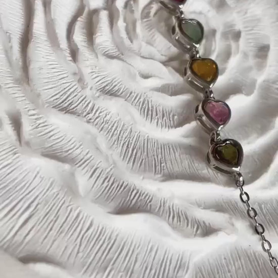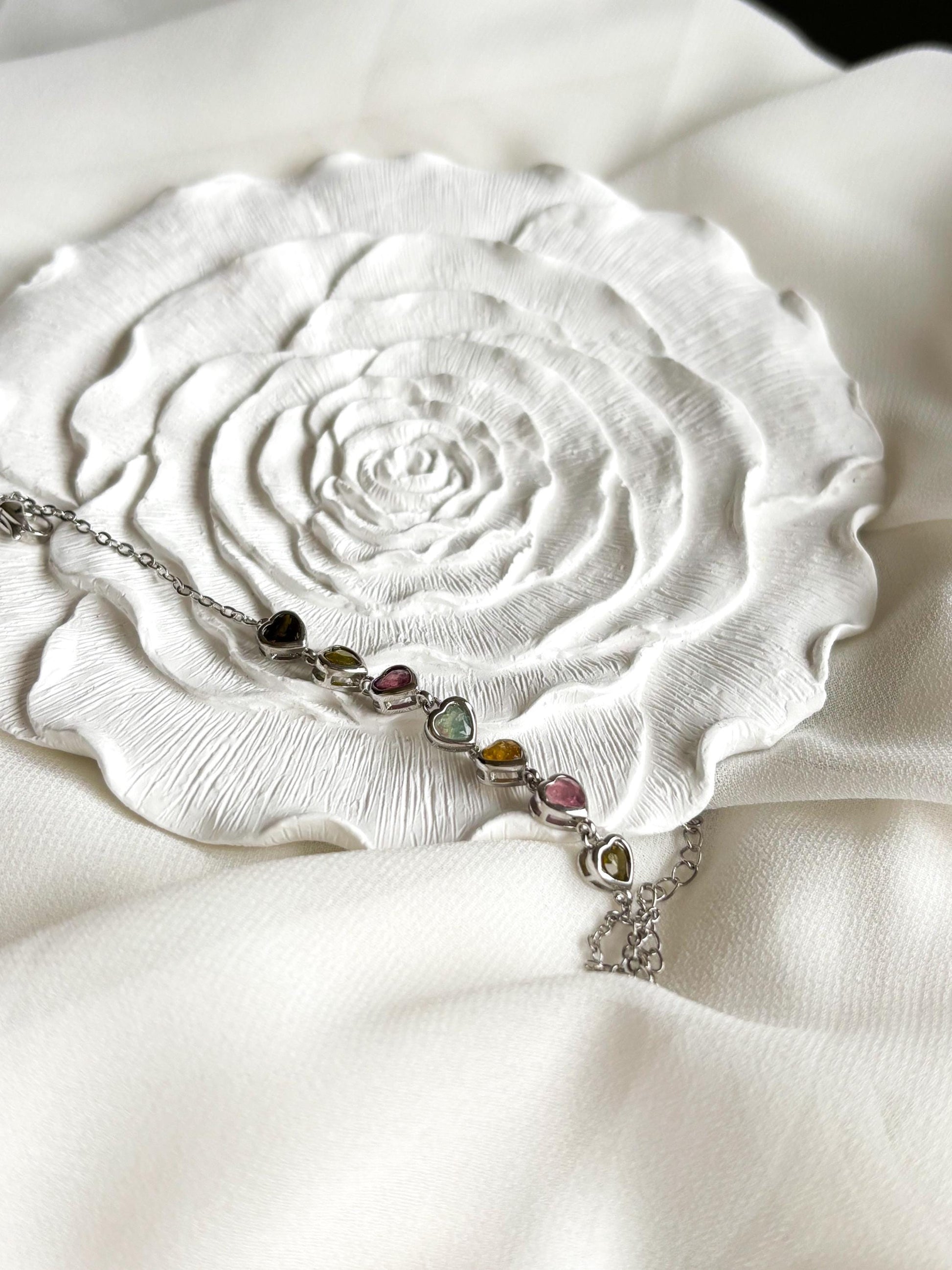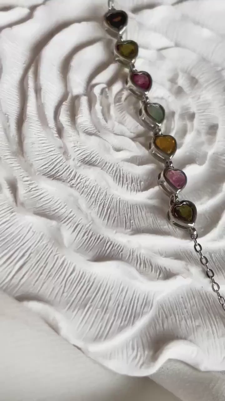 Vivid Heart-Shaped Tourmaline Bracelet – Multicolor Tourmaline in Bezel Setting
