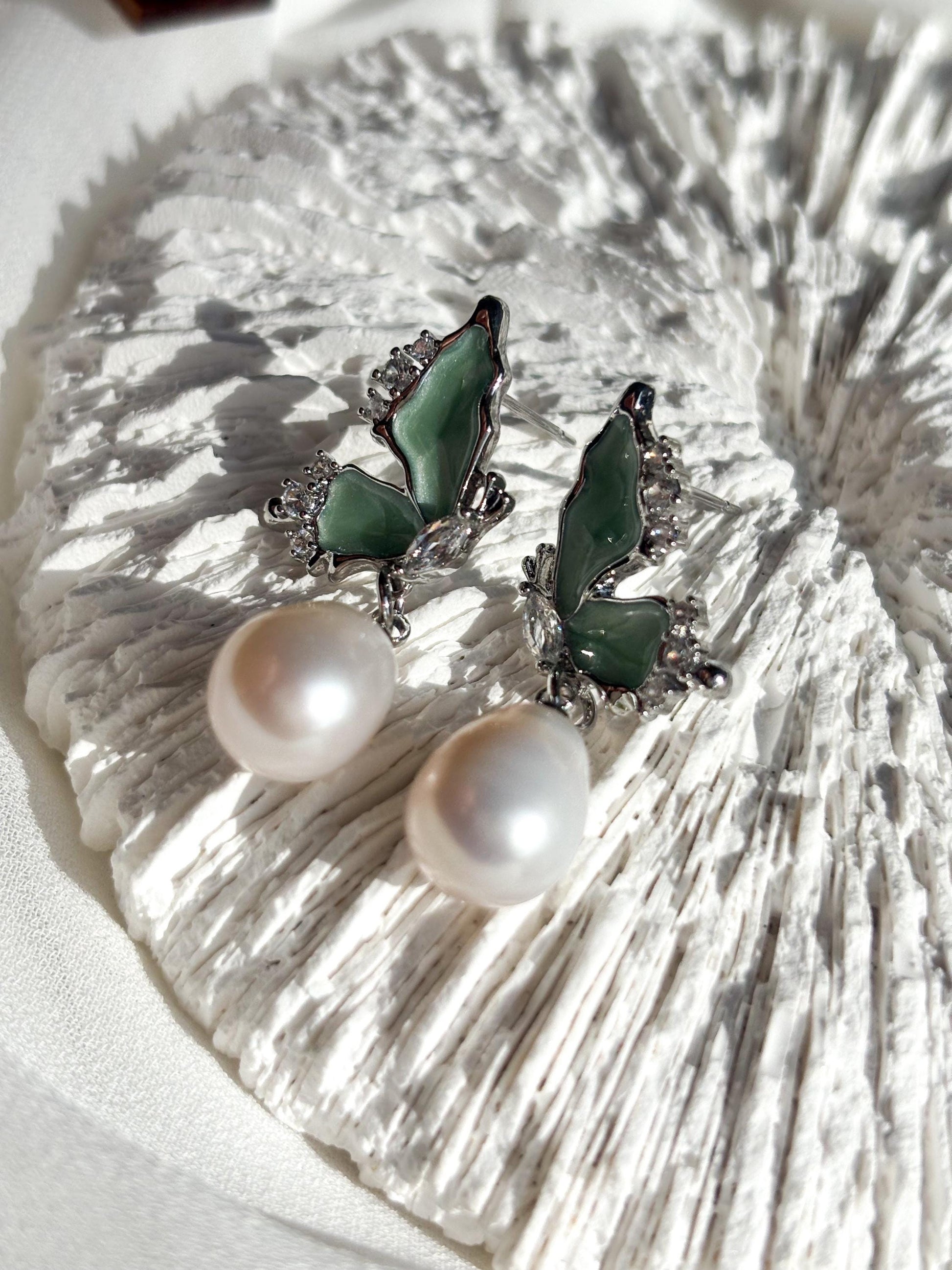 Whispers of Spring – Teardrop Pearl & Butterfly Earrings