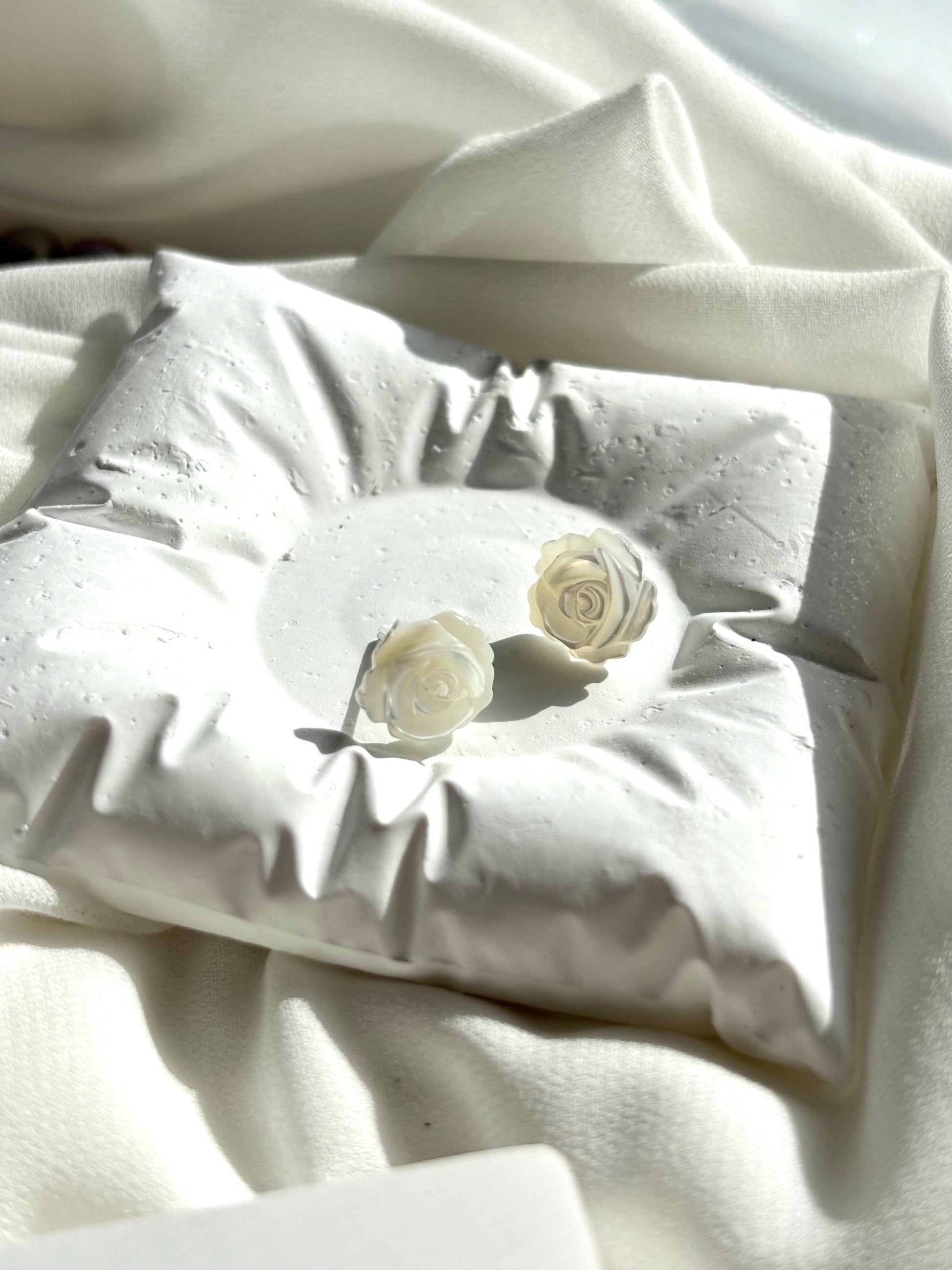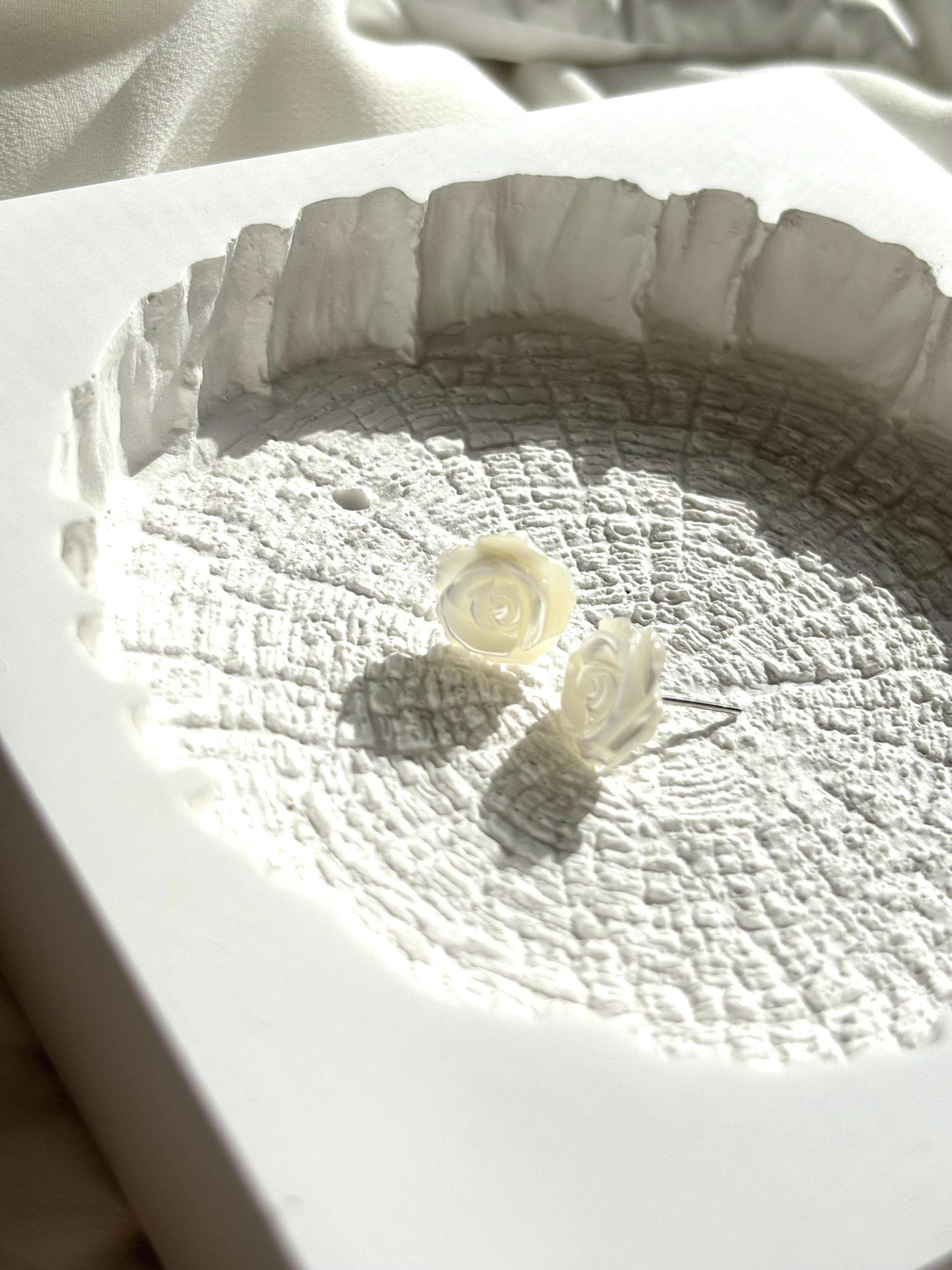 White Rose Stud Earrings – Mother of Pearl with Sterling Silver 925, Elegant Floral Jewelry