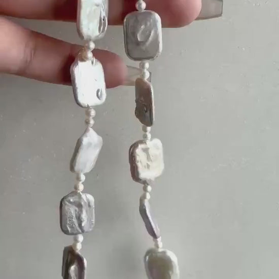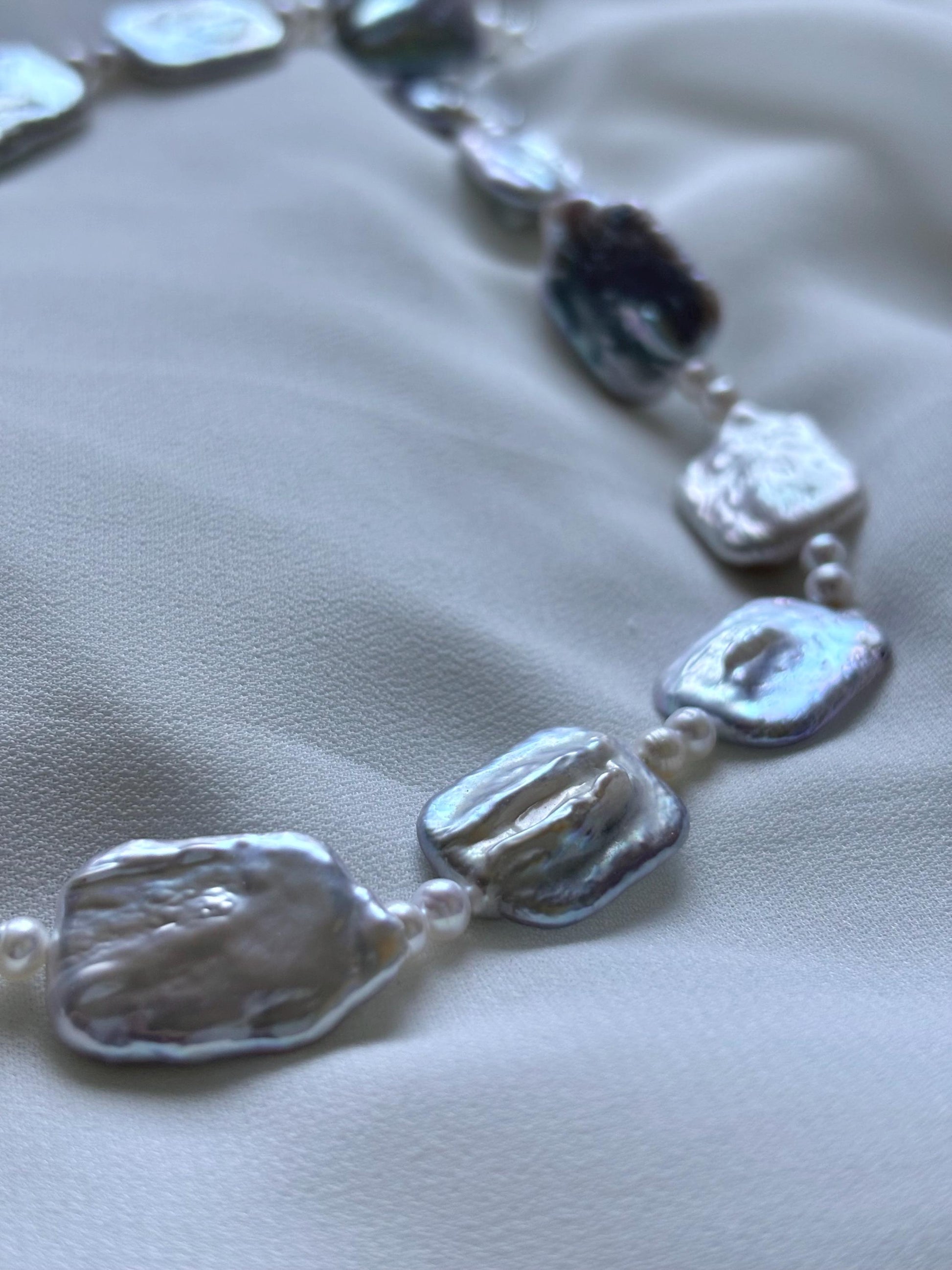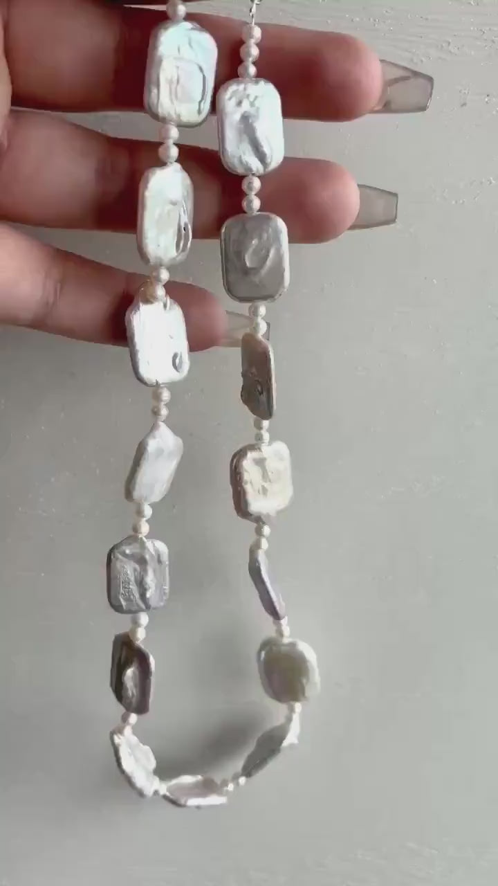 White Truffles Sculpted Rectangular Baroque Pearl 925 Sterling Silver Necklace